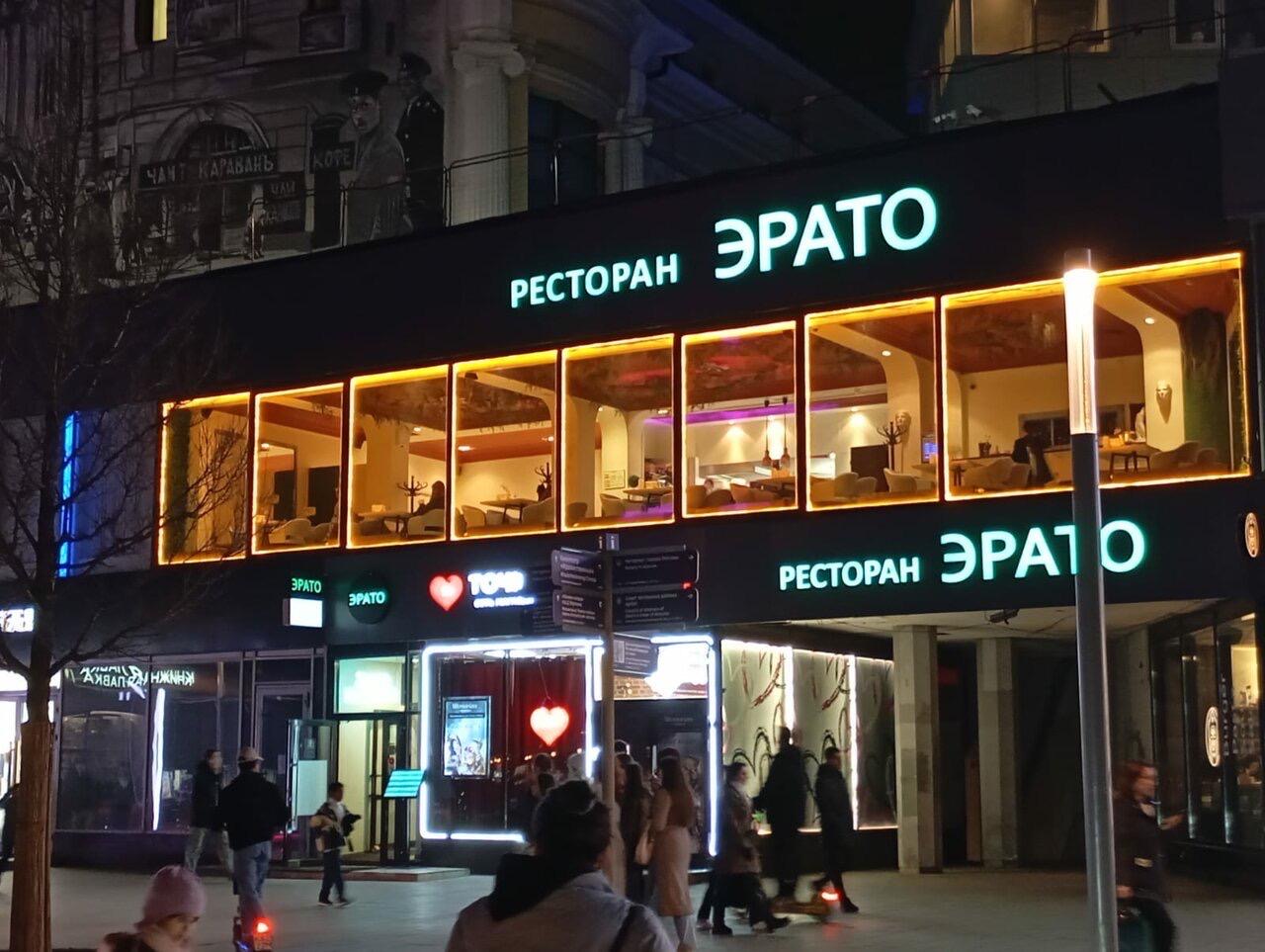 Ресторан назван в честь музы Эрато, она является покровительницей любви, поэзии и музыки.
